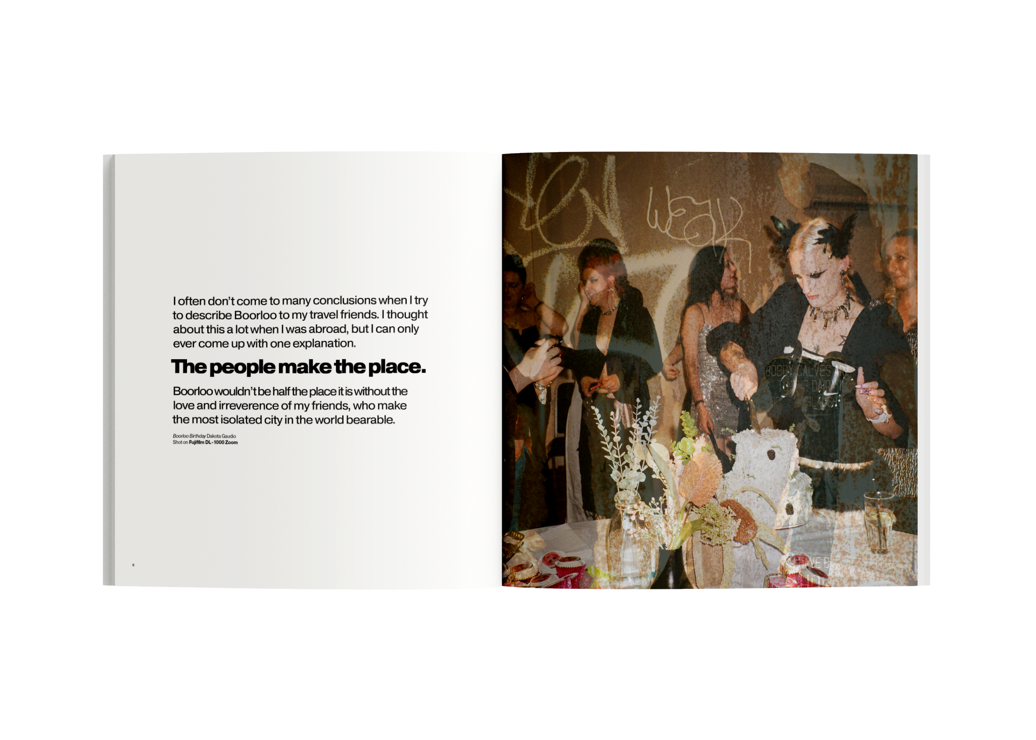“Boorloo wouldn’t be half the place it is without the love and irreverence of my friends, who make the most isolated city in the world bearable.”