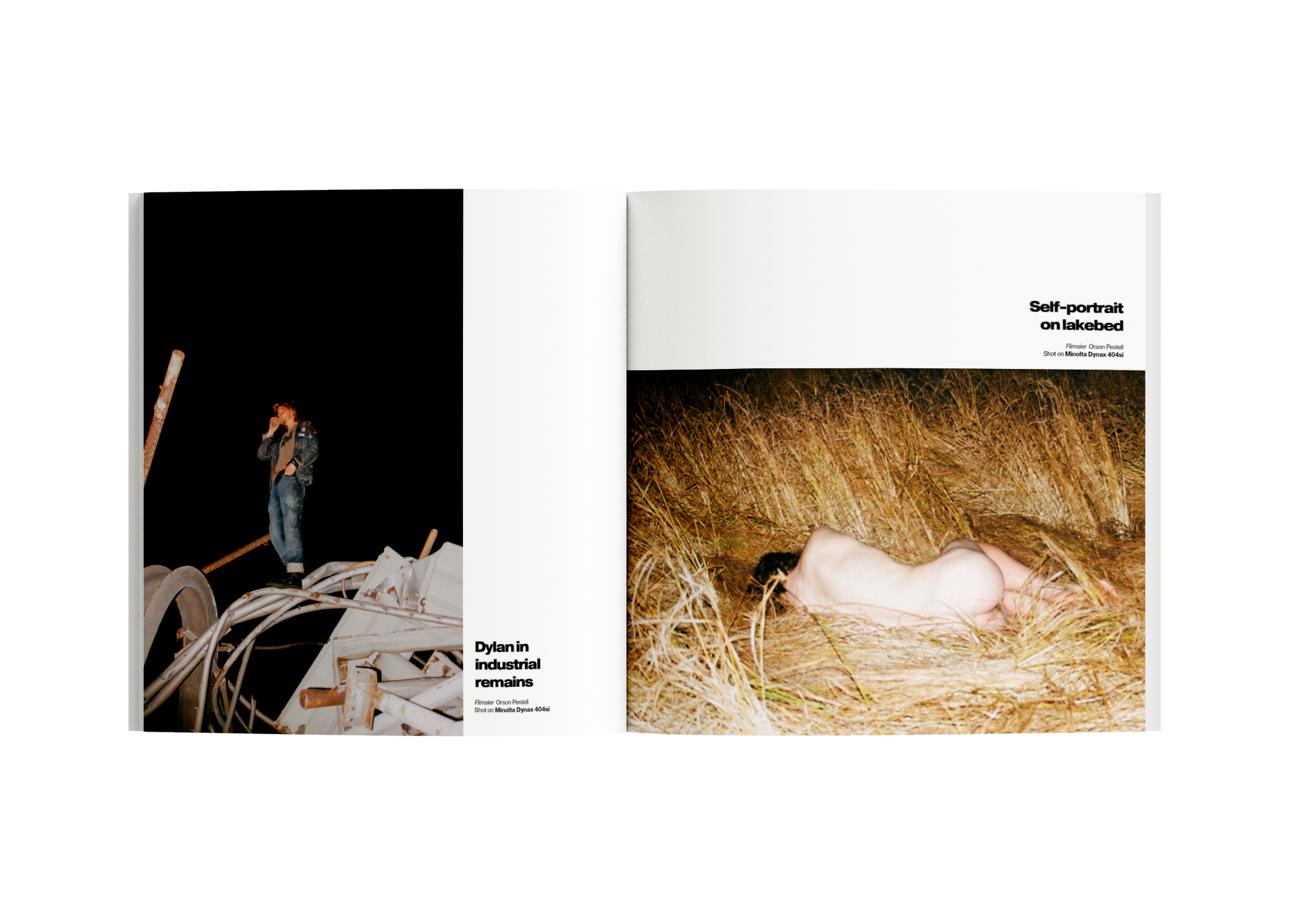 The work moves through three scenes: Will skitching, Dylan in industrial remains, and Self-portrait on lakebed. Together, they read like fragments of the same world — youth in motion, friendship as a constant, and the quiet urge to document it before it slips.