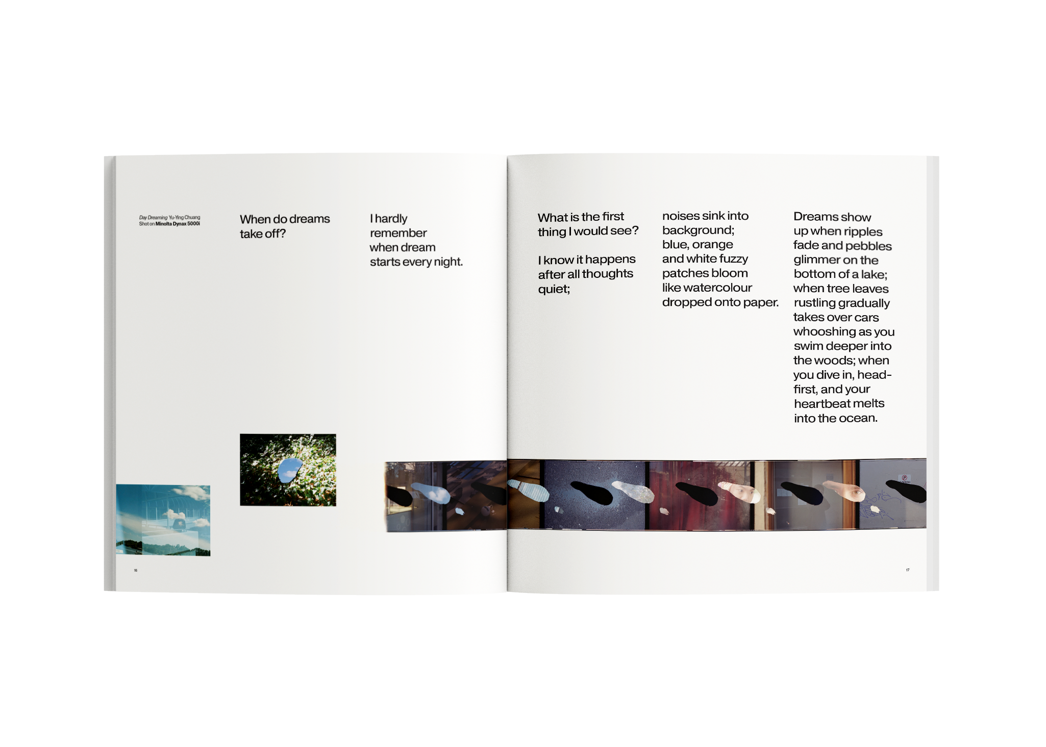 “I’ve been experimenting with printmaking, bookbinding and book design for the past few years. Last year was all about binding — this year I would like to dive into methods of making prints. And I feel a pull towards cyanotypes and tampering my films (e.g. puncture, forced light leaks, more odd ways of double exposure). The better if the outcomes are unknown, so the end product will always be a surprise.”